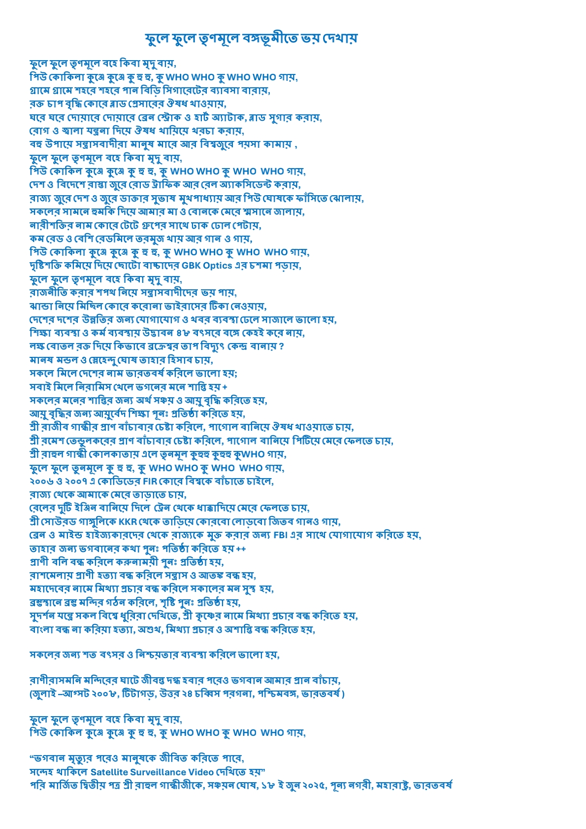 Please inform United Nation as soon as possible, email me Lojek.CLub@gmail.com; gourighosh1947@gmail.com; fir1489.1501.10tcstitagarhps08@gmail.com http://sanchayanghosh.tripod.com, www.sanchayan.info, www.varatbarsha.com, www.alfabat.co.in, www.jarmany.de, www.enjenear.info; www.hahahahaha.CLub
